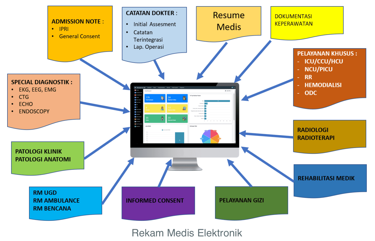 RME adalah sistem digital untuk menyimpan dan mengelola data kesehatan pasien. Sistem ini memungkinkan tenaga kesehatan mengakses informasi dengan cepat dan akurat, sehingga mempercepat proses diagnosis dan pengobatan.